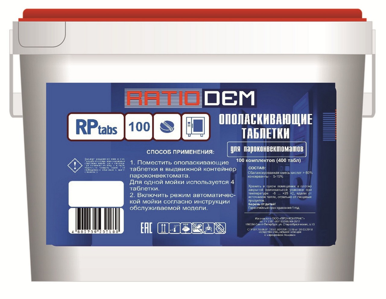 Ополаскивающие таблетки для пароконвектоматов с эффектом декальцинации Ведро 100 таб RatioDem RP tab