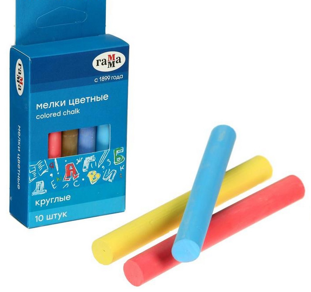 Мелки школьные для рисования Гамма, цветные, 10шт. мягкие, круглые