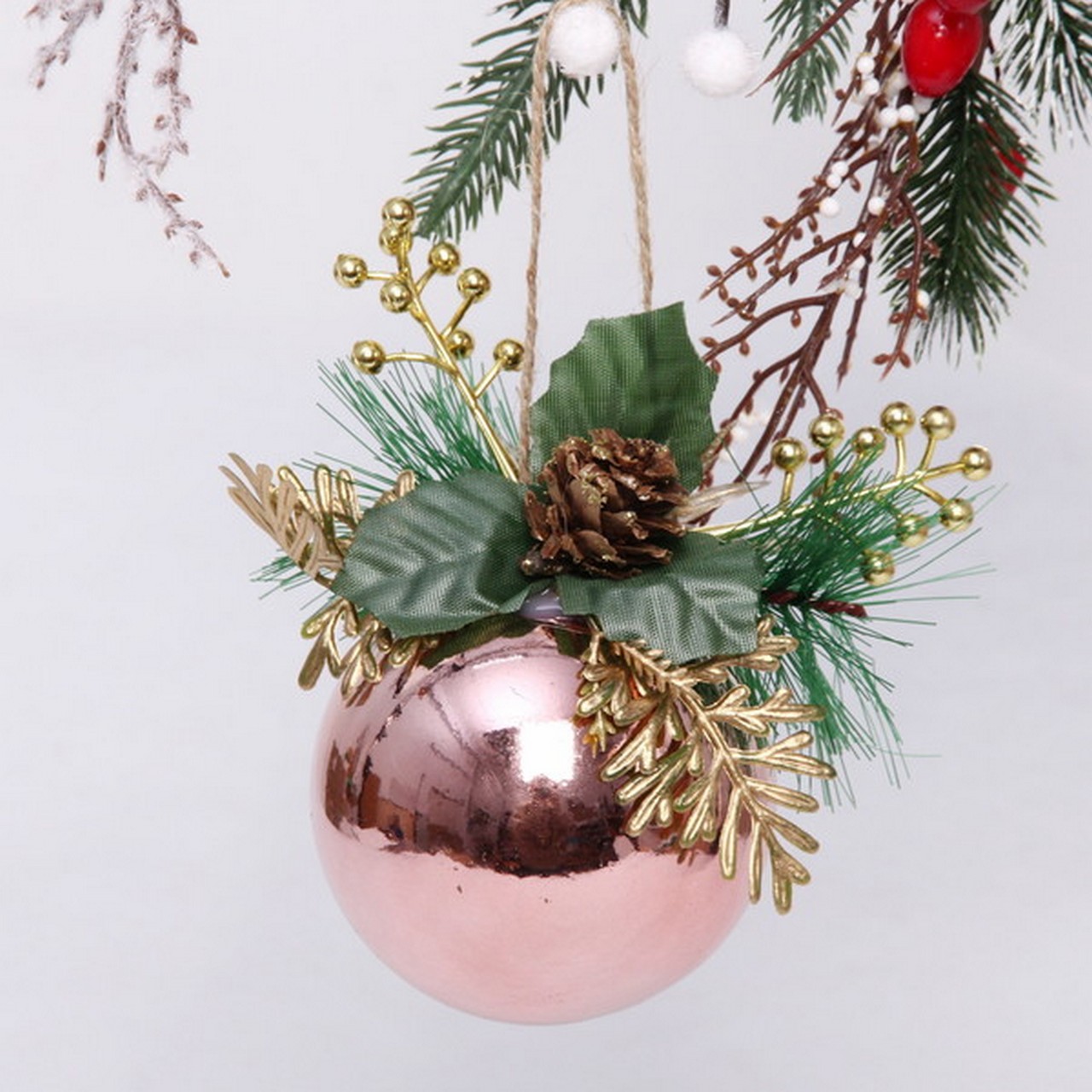 Шар новогодний "Лесное чудо" 8 см, Розовое золото