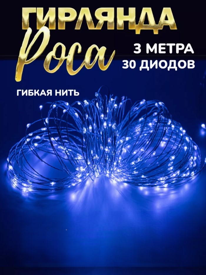 Гирлянда на батарейках 3 м, 30 LED "Роса", синий