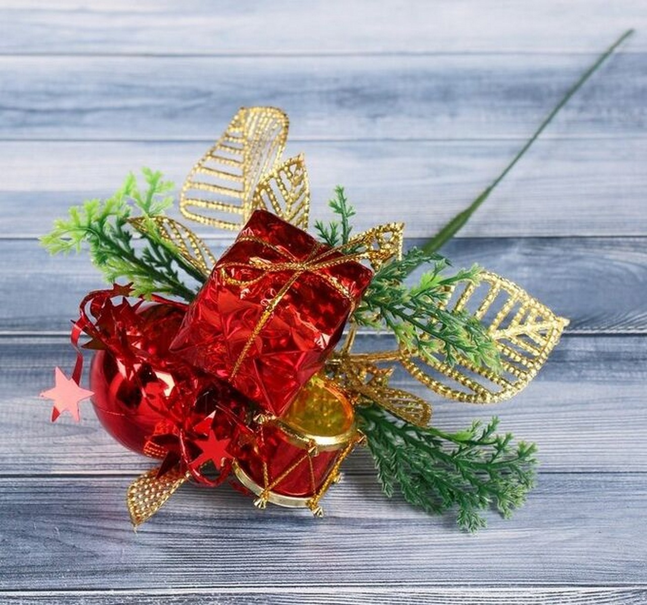 Декор "Зимняя сказка" шарик и подарок 15 см, красный 4301761