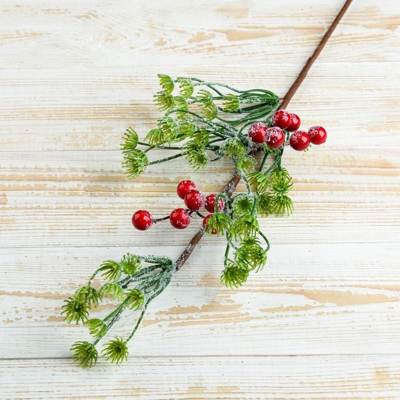 Декор "Зимняя магия" веточка зелёная ягоды иней 42 см 4301801