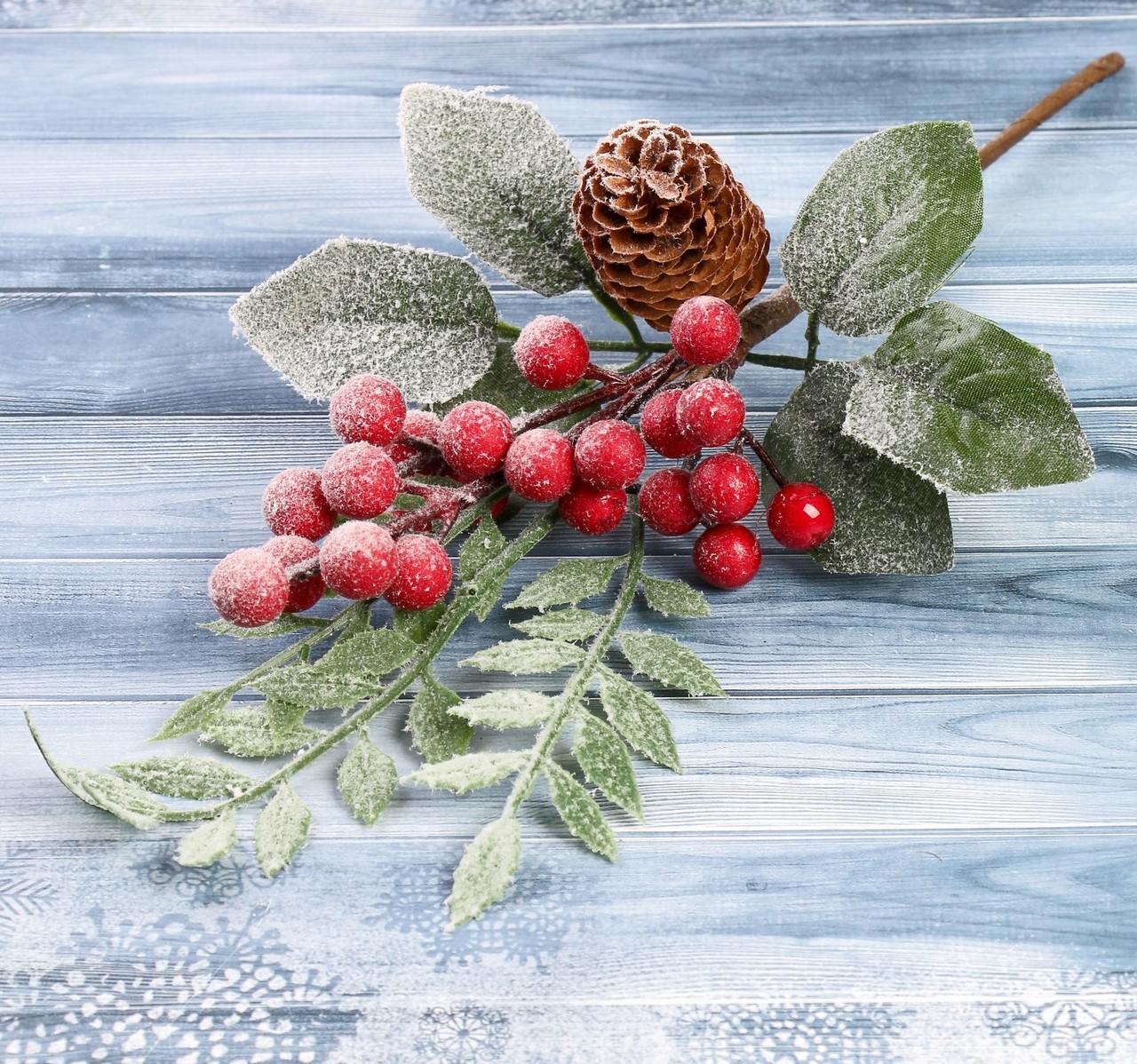 Декор "Зимние грезы" ветка листья ягоды шишка 27см 4301756