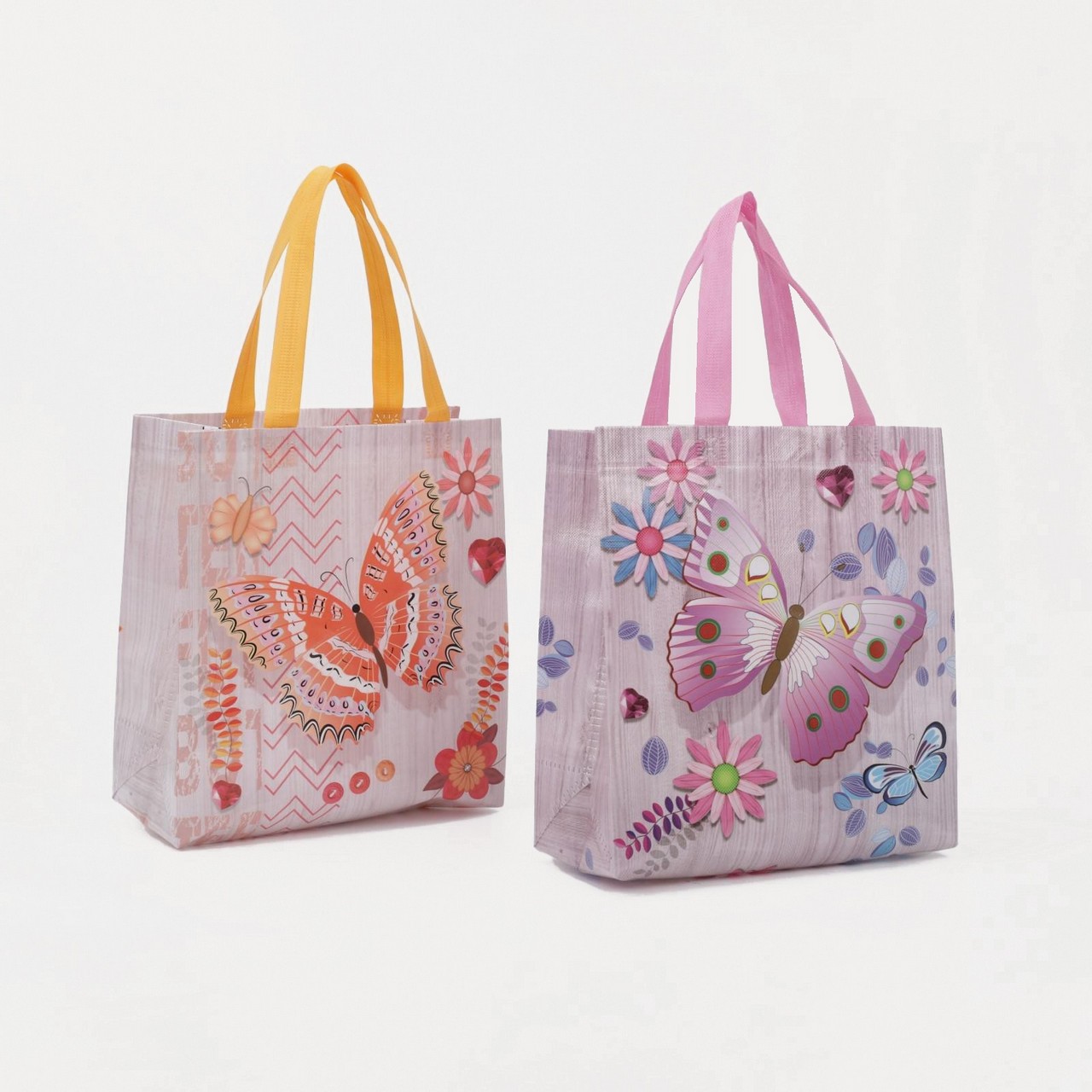 Сумка хозяйственная ПВХ, 27х29+12 см, без молнии, "Бабочки", микс