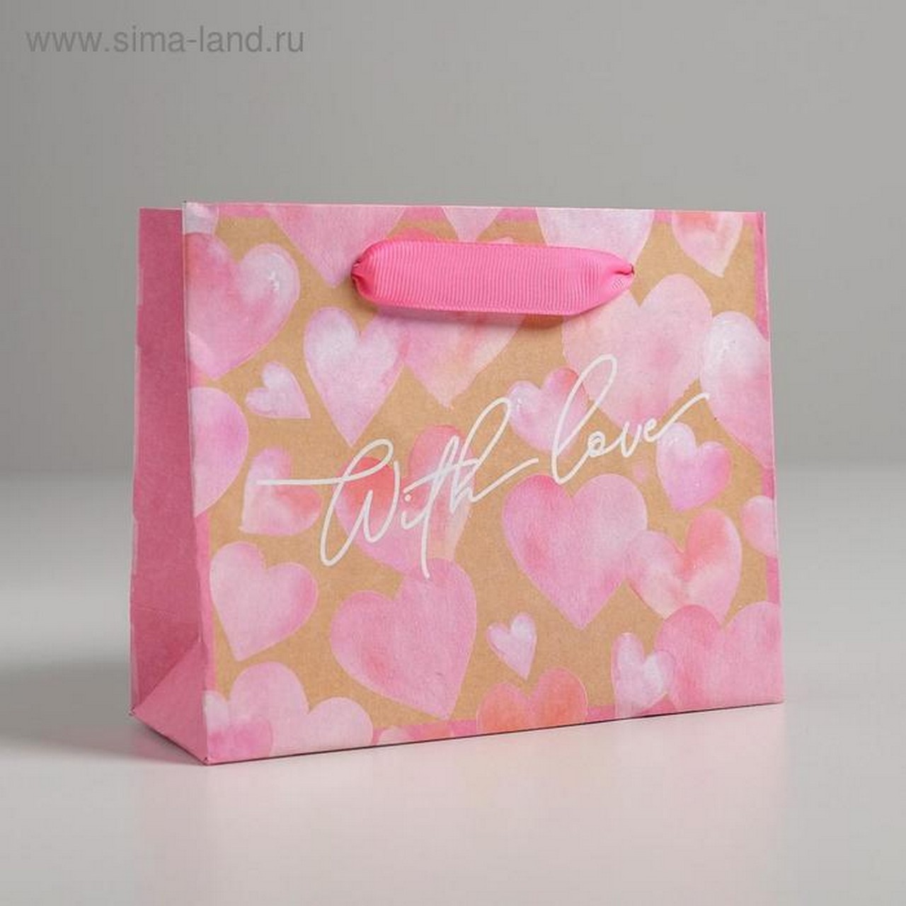 Пакет подарочный крафтовый, 15х12х5,5 см, "With love" 4764583