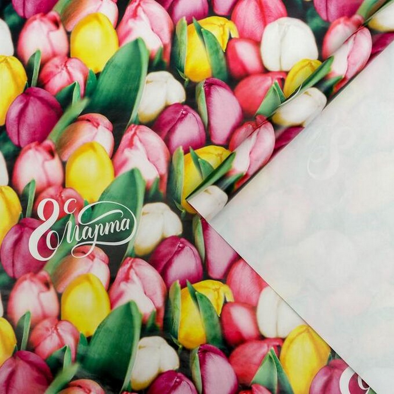 Бумага упаковочная глянцевая «Тюльпаны с 8 марта», 70 × 100 см 5351672