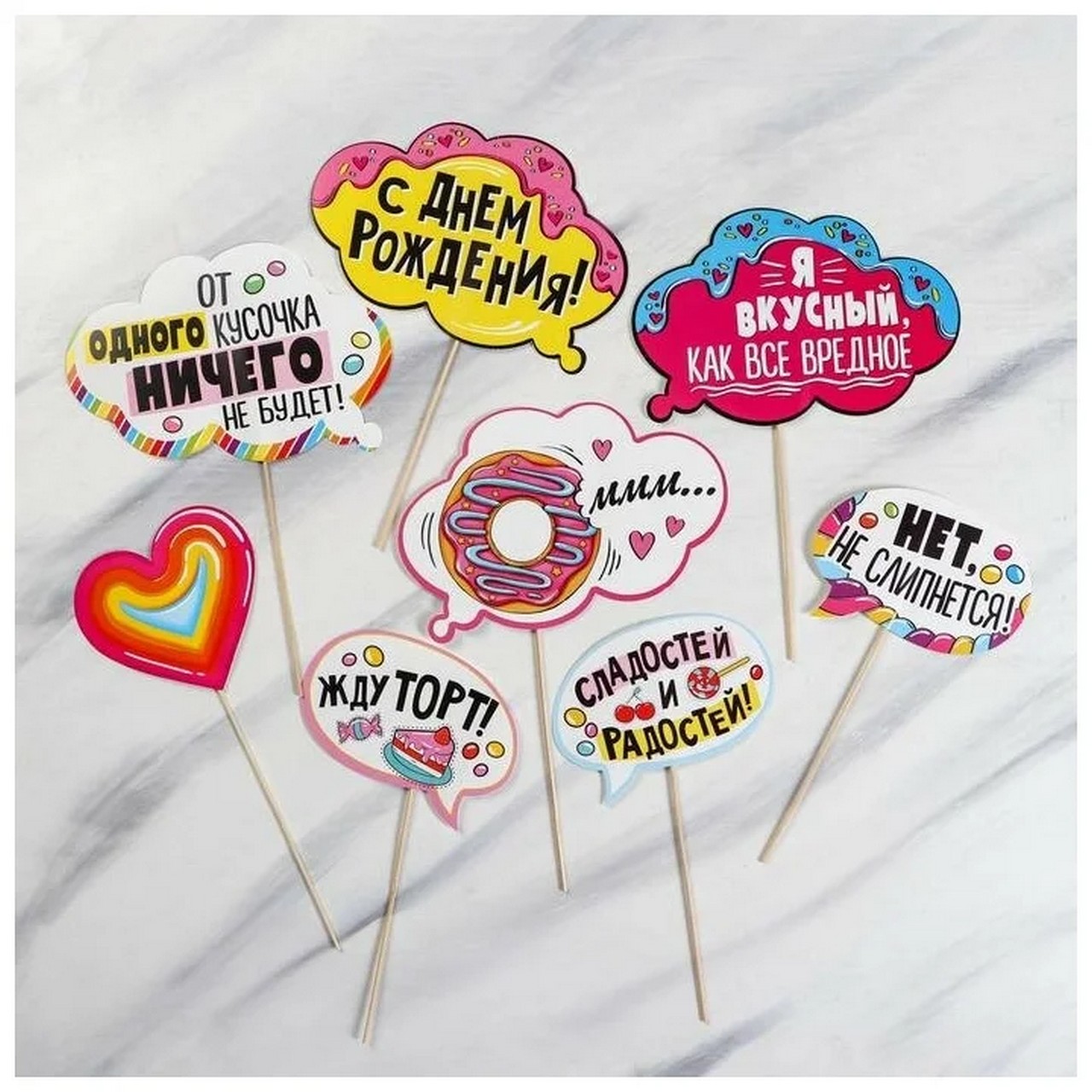 Набор фотобутафории "Сладкий день рождения", 8 шт., 21х30 см 3524613