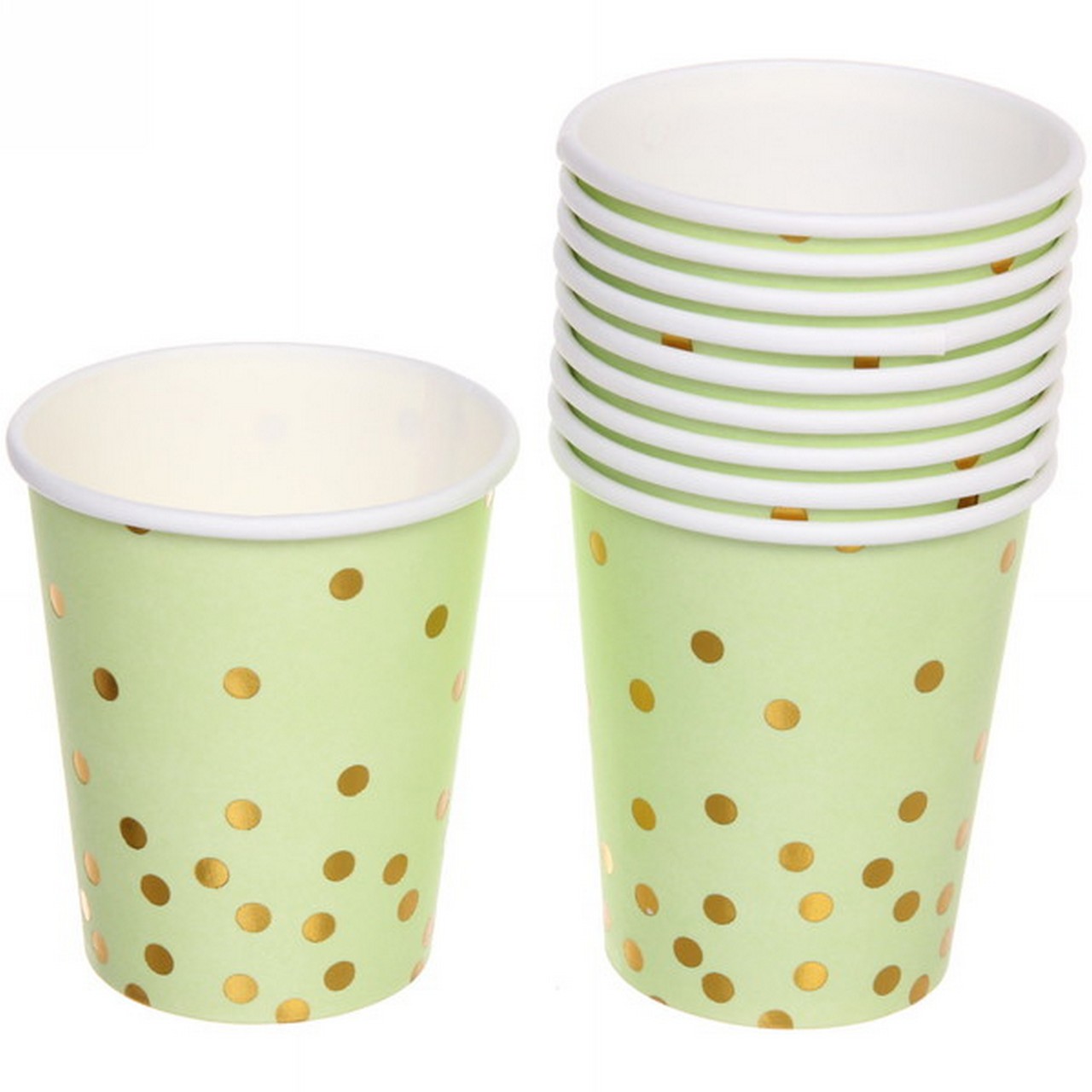 Стакан бум. 200 мл. праздничный /10 шт/ Конфетти, салатовый