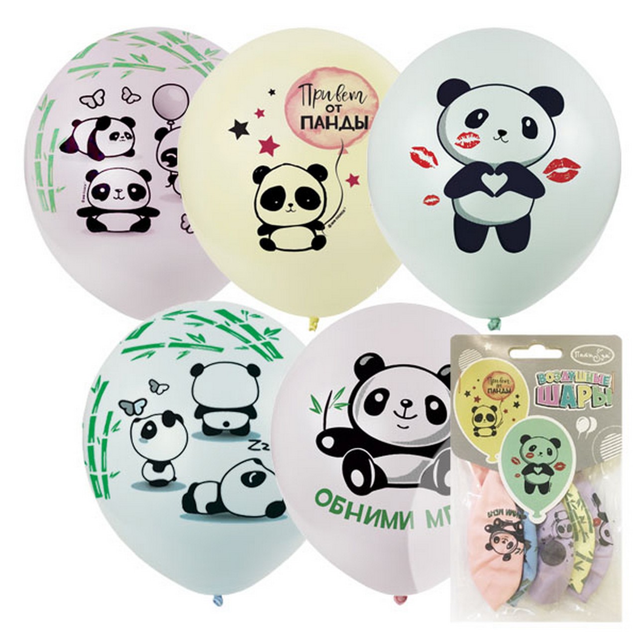 Шары воздушные 5 шт в ассортименте М12"/30см Macaroons ассорти рис. Панды