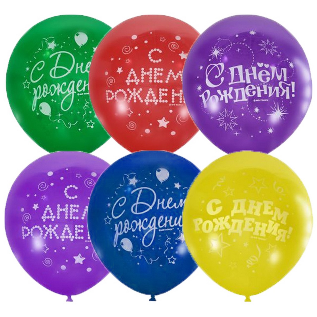 Шары воздушные 50 шт в ассортименте М 12"/30см С Днем Рождения Серпантин