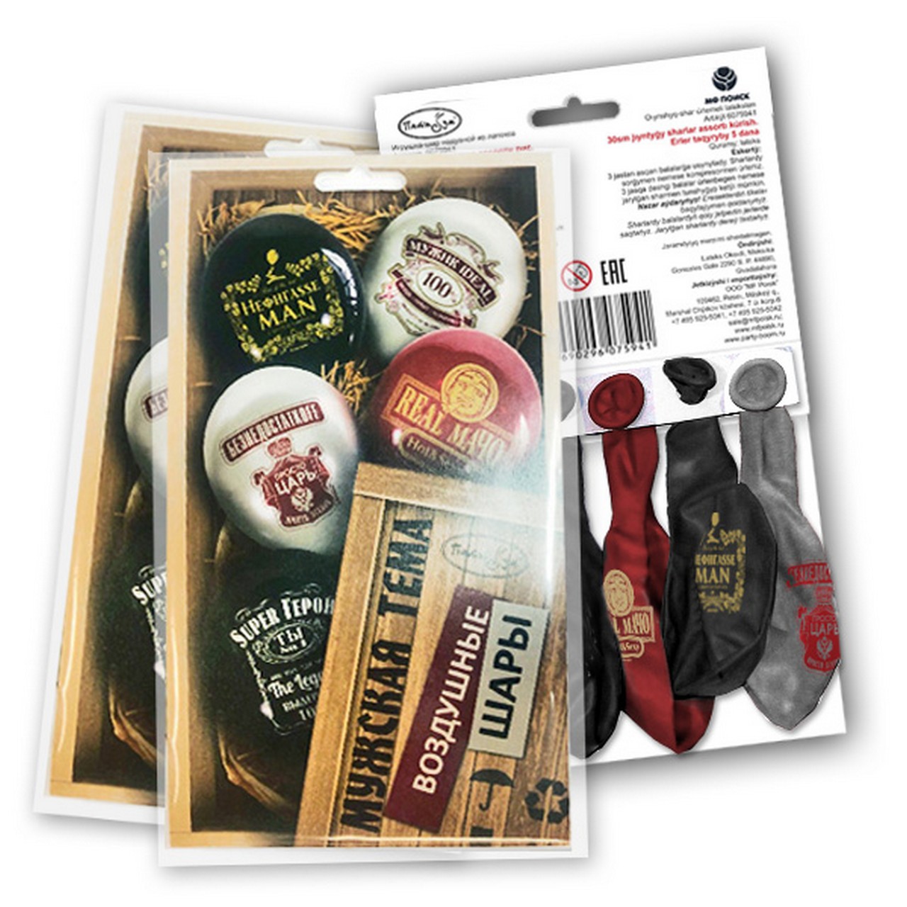 Шары воздушные 5 шт в ассортименте M 12"/30см Мужская Тема