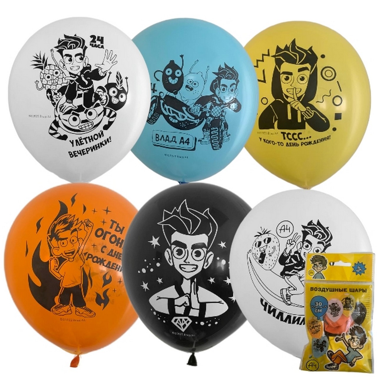 Шары воздушные 5 шт в ассортименте M 12"/30см Влад А4