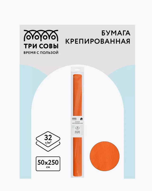 Бумага крепированная Три совы, 50*250см, темно-оранжевая, в рулоне